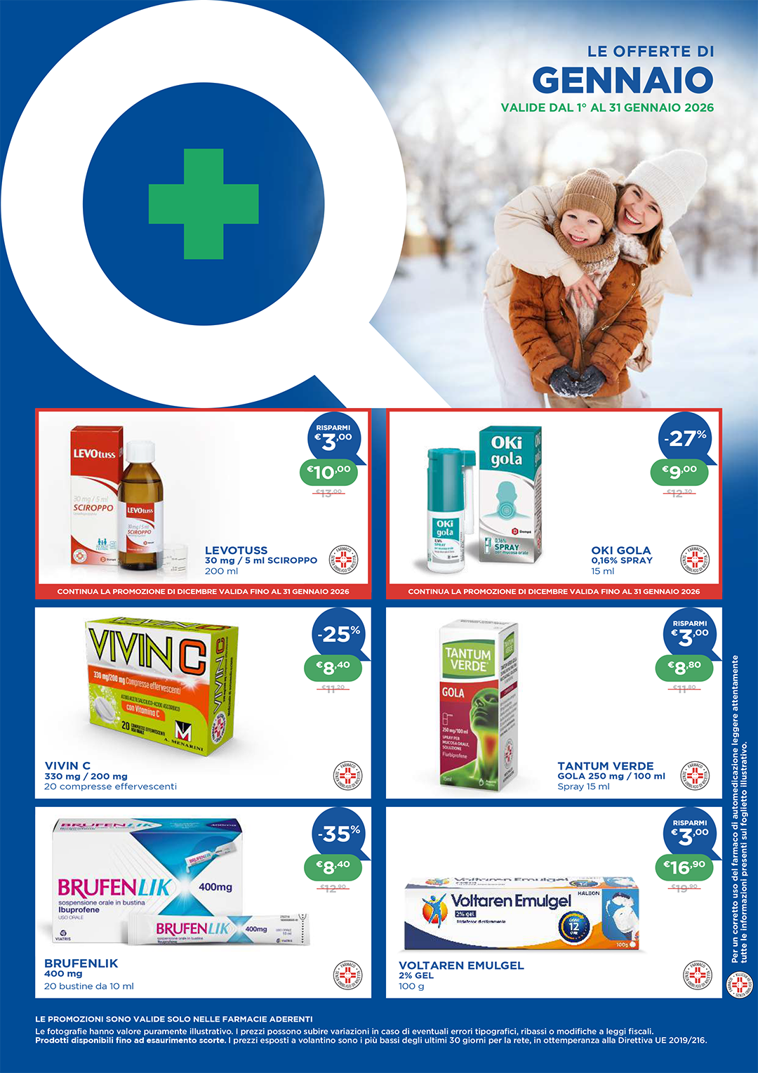 Scarica subito il volantino e scopri tutte le offerte sui farmaci da banco e parafarmaci di questo mese!